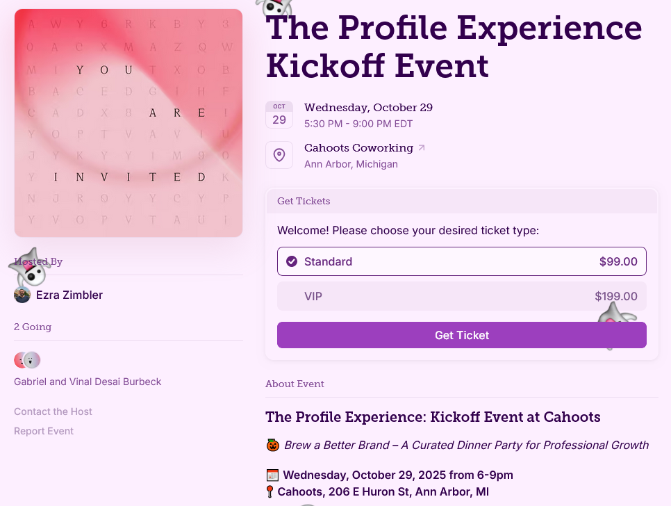 The Profile Experience is more than an event. It is a community of professionals who want to grow, connect, and help each other succeed. At this kickoff dinner, you will share a table with like-minded professionals, leave with practical ways to improve your LinkedIn presence, and enjoy an evening filled with ideas, laughter, and connection.